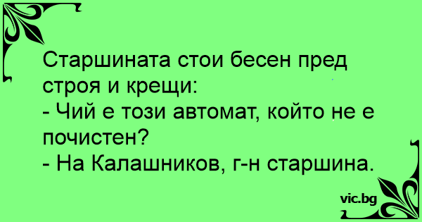 • Вицове от Facebook от нашата страница https://www.facebook.com/www.vic.bg