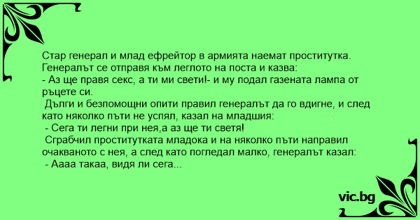 Сграбчил пpoctиtуtkata младока и на няколко пъти направил очакваното с нея, а след като погледал малко, генералът казал: