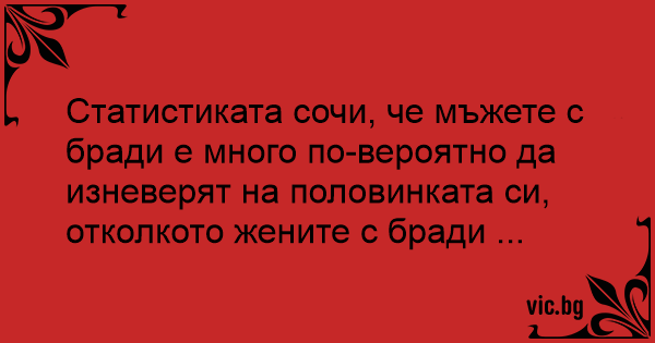 Статистиката сочи, че мъжете с бради е много по-вероятно да изневерят на половинката си, отколкото жените с бради ...