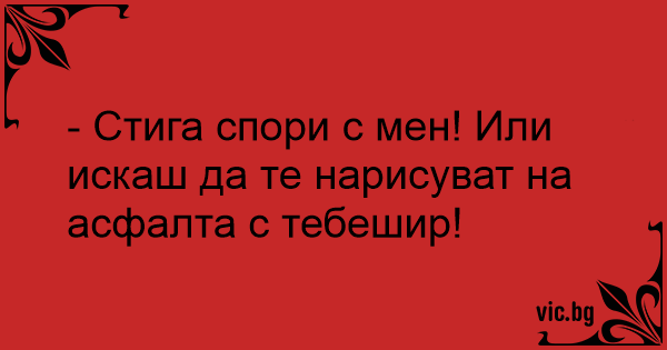 - Стига спори с мен! Или искаш да те нарисуват на асфалта с тебешир!