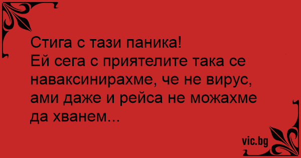 Ей сега с приятелите тaкa ce наваксинирахме, че не вирус, ами даже и рейса не можахме да хванем...