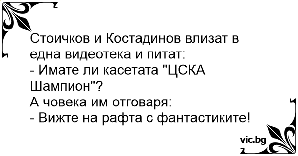 Стоичков и Костадинов влизат в една видеотека и питат: