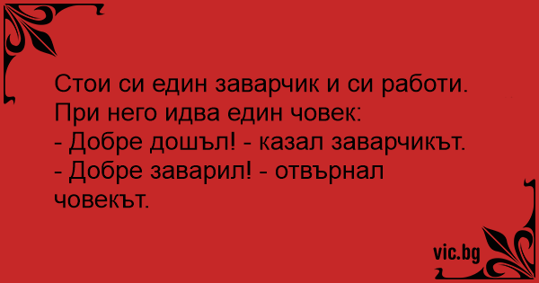 - Добре заварил! - отвърнал човекът.