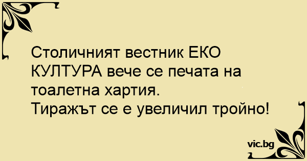 Столичният вестник ЕКО КУЛТУРА вече се печата на тоалетна хартия.