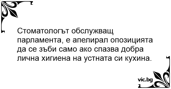 Стоматологът обслужващ парламента, е апелирал опозицията да се зъби само ако спазва добра лична хигиена на устната си кухина.