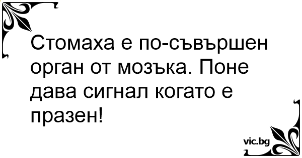 Стомаха е по-съвършен орган от мозъка. Поне дава сигнал когато е празен!