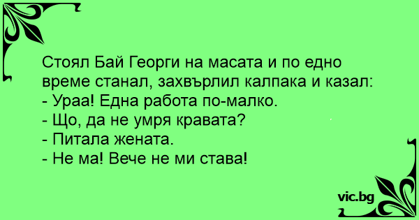 • Вицове от Facebook от нашата страница https://www.facebook.com/www.vic.bg