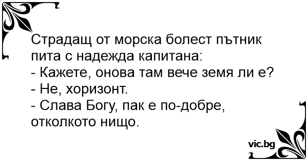 Страдащ от морска болест пътник пита с надежда капитана:
