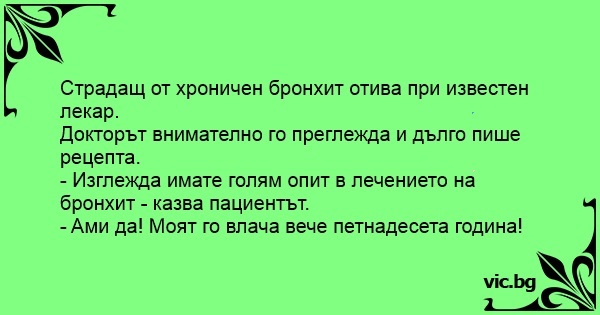 - Изглежда имате голям опит в лечението на бронхит - казва пациентът.
