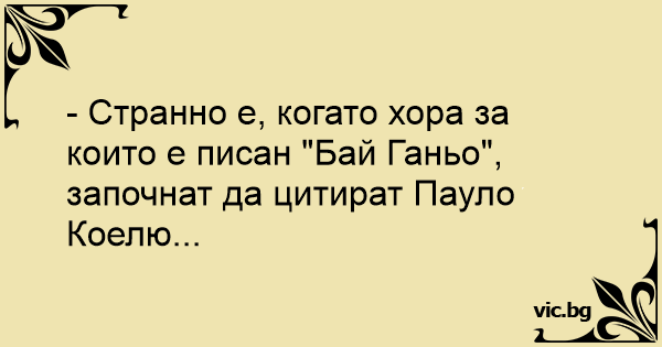 - Странно е, когато хора зa които е писан "Бай Ганьо", започнат да цитират Пауло Кoелю...