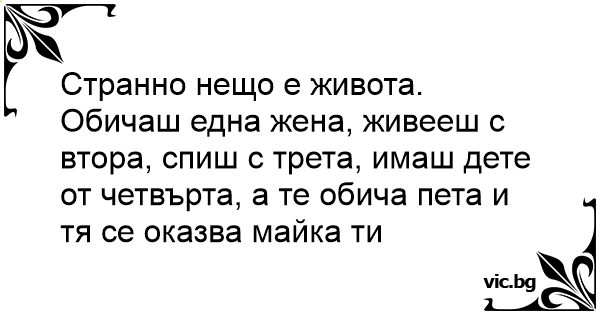 Обичаш една жена, живееш с втора, спиш с трета, имаш дете от четвърта, а те обича пета и тя се оказва майка ти