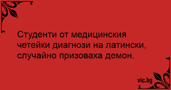 Студенти от медицинския четейки диагнози на латински, случайно призоваха демон.