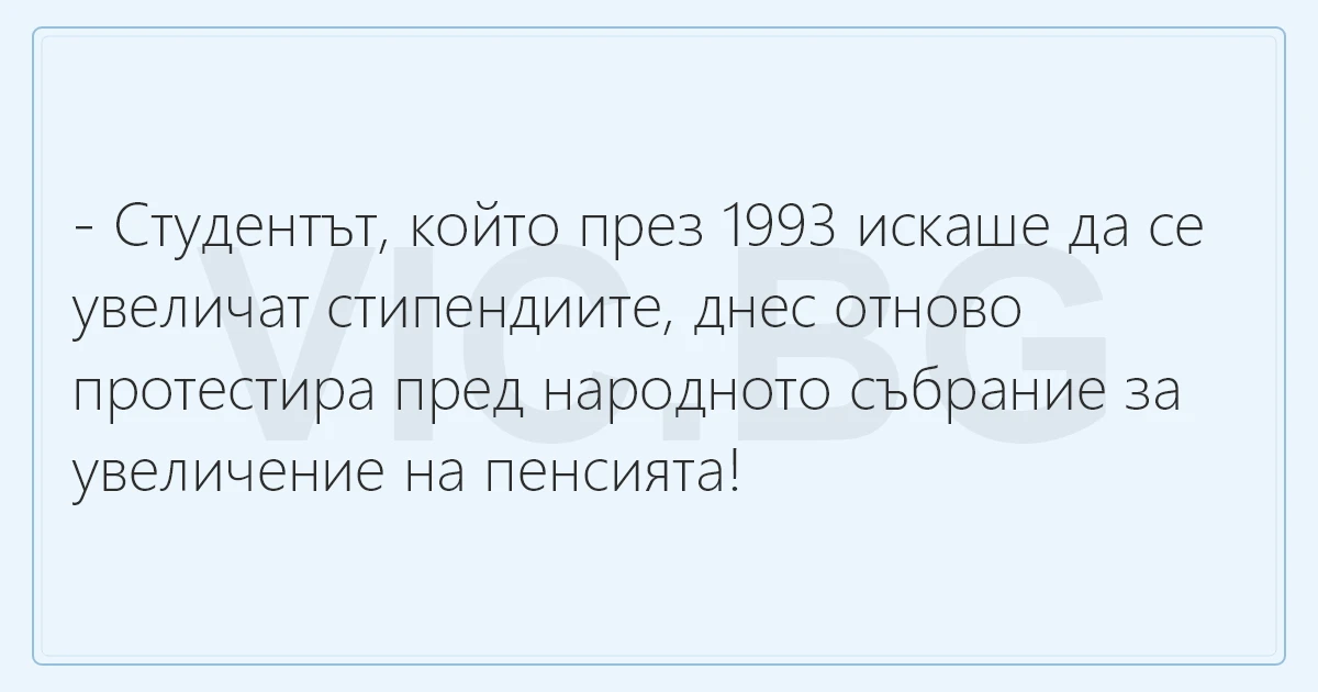 - Студентът, който през 1993 искаше да се увеличат стипендиите, днес отново протестира пред народното събрание за увеличение на пенсията!