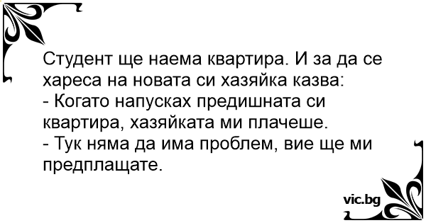 Студент ще наема квартира. И за да се хареса на новата си хазяйка казва: