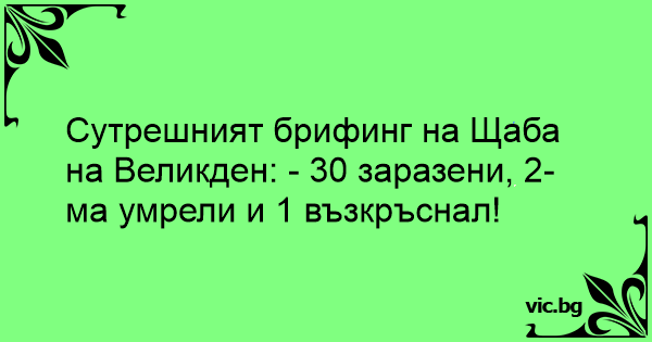 Сутрешният брифинг на Щаба на Великден: - 30 заразени, 2-ма умрели и 1 възкръснал!