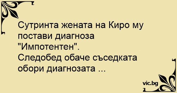 Сутринта жената на Киро му постави диагноза "Импотентен".