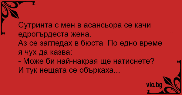 Сутринта с мен в асансьора се качи едрогърдеста жена.