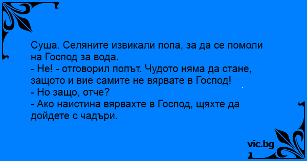 - Не! - отговорил попът. Чудото няма да стане, защото и вие самите не вярвате в Господ!
