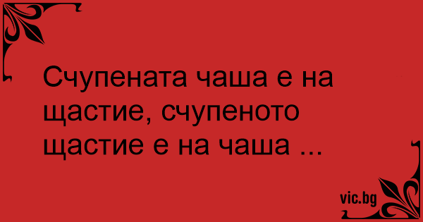 Счупената чаша е на щастие, счупеното щастие е на чаша ...