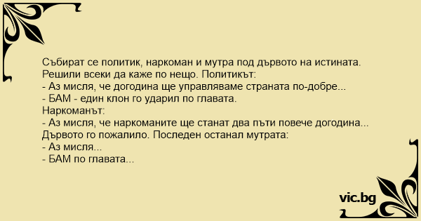 • Вицове от Facebook от нашата страница https://www.facebook.com/www.vic.bg