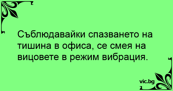 Съблюдавайки спазването на тишина в офиса, се смея на вицовете в режим вибрация.