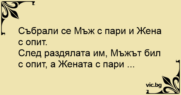 След раздялата им, Мъжът бил с опит, а Жената с пари ...