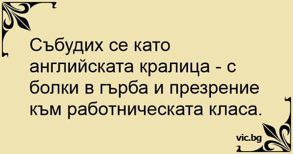 Събудих се като английската кралица - с болки в гърба и презрение към работническата класа.