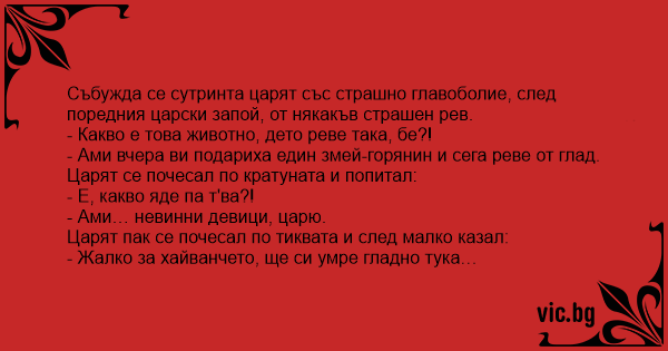 Царят се почесал по кратуната и попитал: