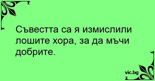 Съвестта са я измислили лошите хора, за да мъчи добрите.