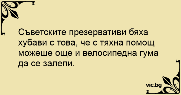 Съветските презервативи бяха хубави с това, че с тяхна помощ можеше още и велосипедна гума да се залепи.