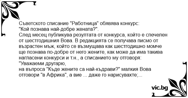 Вицове от Facebook от нашата страница https://www.facebook.com/www.vic.bg