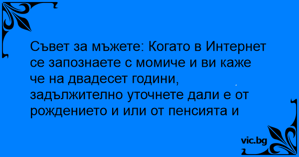 Съвет за мъжете: Когато в Интернет се запознаете с момиче и ви каже че на двадесет години, задължително уточнете дали е от рождението и или от пенсията и