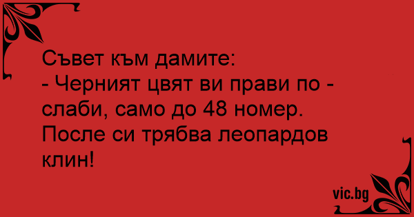 - Черният цвят ви прави по - слаби, само до 48 номер. После си трябва леопардов клин!
