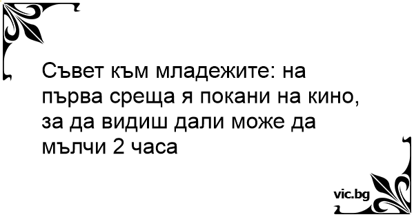 Съвет към младежите: на първа среща я покани на кино, за да видиш дали може да мълчи 2 часа