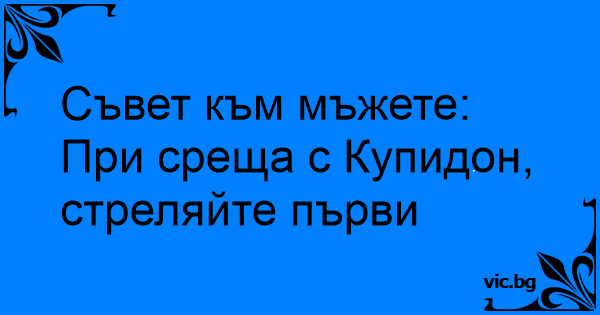 Съвет към мъжете: При среща с Купидон, стреляйте първи