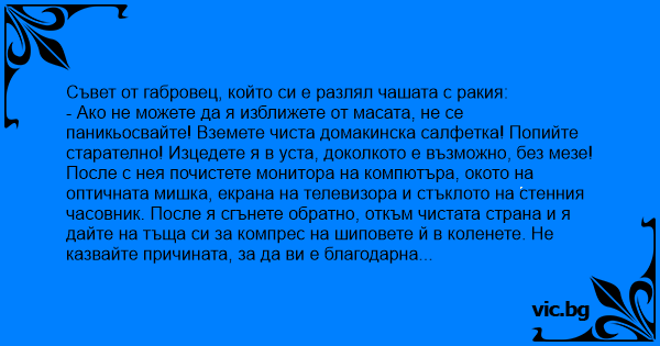 Съвет от габровец, който си е разлял чашата с ракия:
