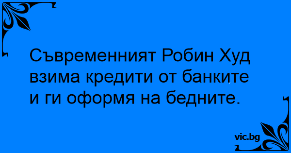 Съвременният Робин Худ взима кредити от банките и ги оформя на бедните.