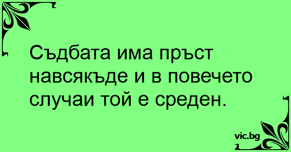 Съдбата има пръст навсякъде и в повечето случаи той е среден.