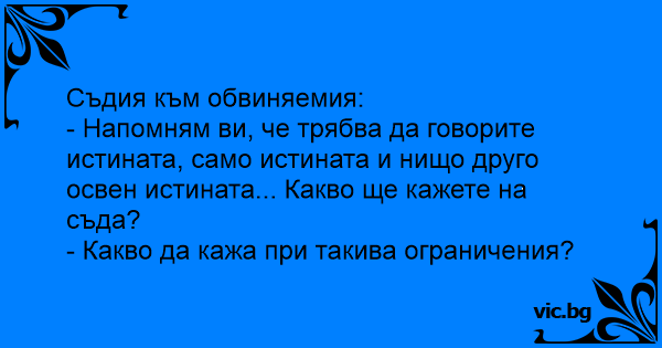 - Напомням ви, че трябва да говорите истината, само истината и нищо друго освен истината... Какво ще кажете на съда?