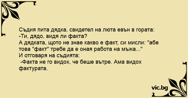 А дядката, щото не знае какво е факт, си мисли: "абе това "факт" требе да е оная работа на мъжа..."