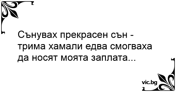 Сънувах прекрасен сън - трима хамали едва смогваха да носят моята заплата...