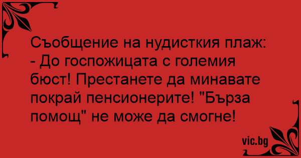 - До госпожицата с големия бюст! Престанете да минавате покрай пенсионерите! "Бърза помощ" не може да смогне!