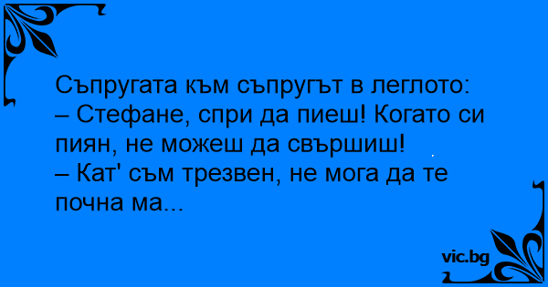– Стефане, спри да пиеш! Когато си пиян, не можеш да свършиш!