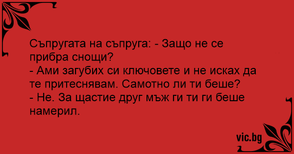 Съпругата на съпруга: - Защо не се прибра снощи?