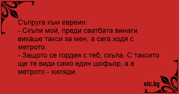 - Скъпи мой, преди сватбата винаги викаше такси за мен, а сега ходя с метрото.