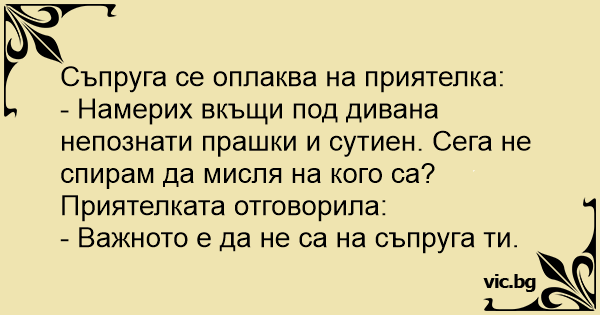 • Вицове от Facebook от нашата страница https://www.facebook.com/www.vic.bg