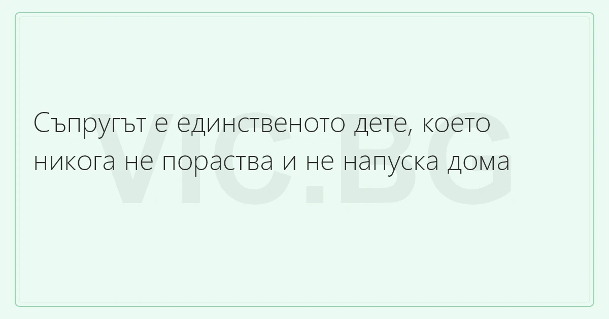 Съпругът е единственото дете, което никога не пораства и не напуска дома 1 0 0 Вицове за Семейния живот
