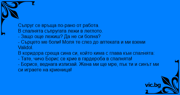• Вицове от Facebook от нашата страница https://www.facebook.com/www.vic.bg