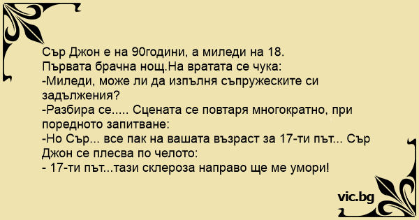 -Но Сър... все пак на вашата възраст за 17-ти път... Сър Джон се плесва по челото: