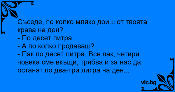 Съседе, по колко мляко доиш от твоята крава на ден?